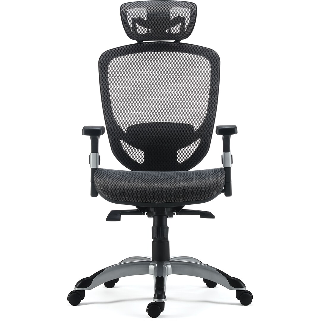 Designed for style and functionality, the chair has a breathable mesh back and headrest for cooling comfort and adjustable lumbar support to help prevent lower back strain.