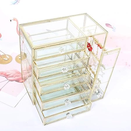 Metal Glass Large Accent Glass With Gold Trim Decorative Cabinet Decorative Keepsake Box Mirror Clear Drawer Storage Vintage Jewelry Organizer For Bathroom Countertop Silver Amazon Ca Beauty from images-na.ssl-images-amazon.com