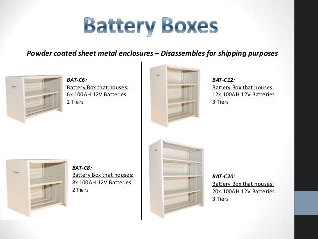 Products include outdoor battery compartment enclosures, racking battery enclosures and pole or wall mounting battery box enclosures.