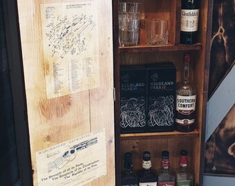 2) shelf #2 is used for liquor bottles standing upright. It's not just for whiskey! Tall liquor cabinet constructed from wood and finished with a mystic black pallet.