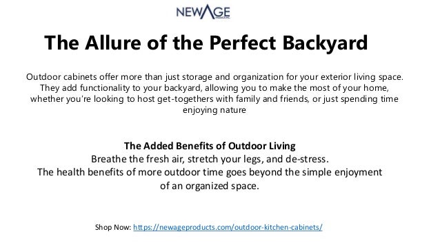 Outdoor kitchen cabinets built to last a lifetime! Live the outdoor life in style with our easy to assemble outdoor kitchen cabinets. Organizing spaces and improving homes, newage products inc. Newage products stainless steel outdoor kitchen cabinets.
