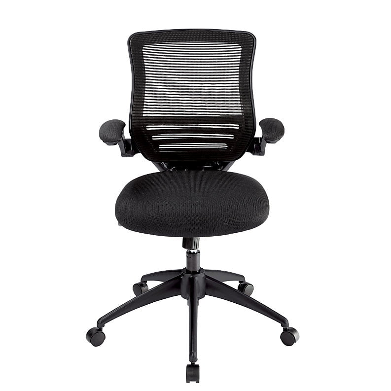 Realspace Calusa Mesh Mid Back Chair. Contemporary black mesh looks great in any office and facilitates airflow to keep you comfortable. Images shown are from the new version of this item and are for reference only.