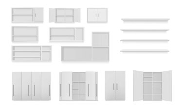 Different versions of wardrobes, bookcases, cupboards.